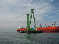 We transported a leg component of gantry crane for Marugame Headquarters, Imabari Shipbuilding Co., Ltd.