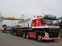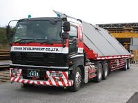 Lined up a inclined deck trailer.